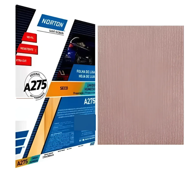 As lixas a seco Norton têm características como alto poder de corte devido ao abrasivo de Óxido de Alumínio, tecnologia antiempastamento (No-Fil) para maior durabilidade, e versatilidade de aplicação em diferentes materiais (massas, primers, tintas, vernizes, madeira). Elas estão disponíveis em diversas linhas, como A275 e Multi-Air (automotivas), TFF (madeira) e Metalite, e podem ser usadas manualmente ou em máquinas.