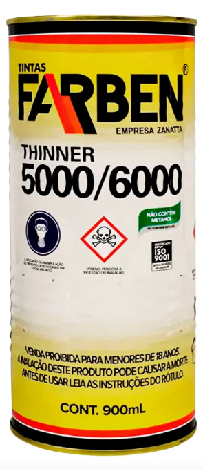 O Thinner 5000/6000 da Farbené um solvente versátil de evaporação rápida, ideal paralimpeza de equipamentosde pintura (pistolas, bicos) e paradiluição de primers universais, primers e esmaltes sintéticos, garantindo um bom acabamento e prolongando a vida útil das ferramentas, mas deve ser usado com cautela na diluição para não prejudicar o brilho, sendo a limpeza o seu foco principal para remoção de resíduos.